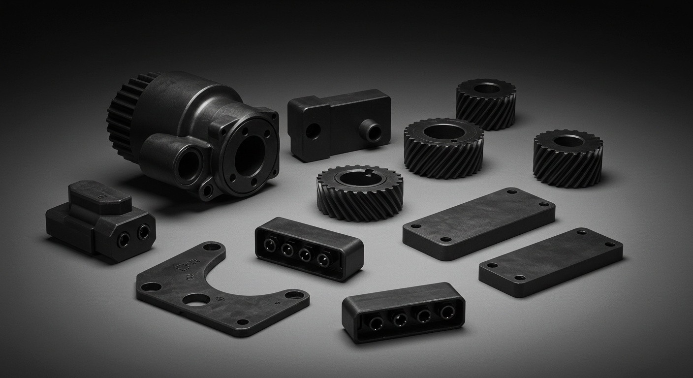 - Полиформальдегид (POM, ацеталь) — устойчив к износу и деформации, обеспечивает стабильность геометрии при высокой точности деталей. Идеален для подвижных элементов и прецизионных деталей.