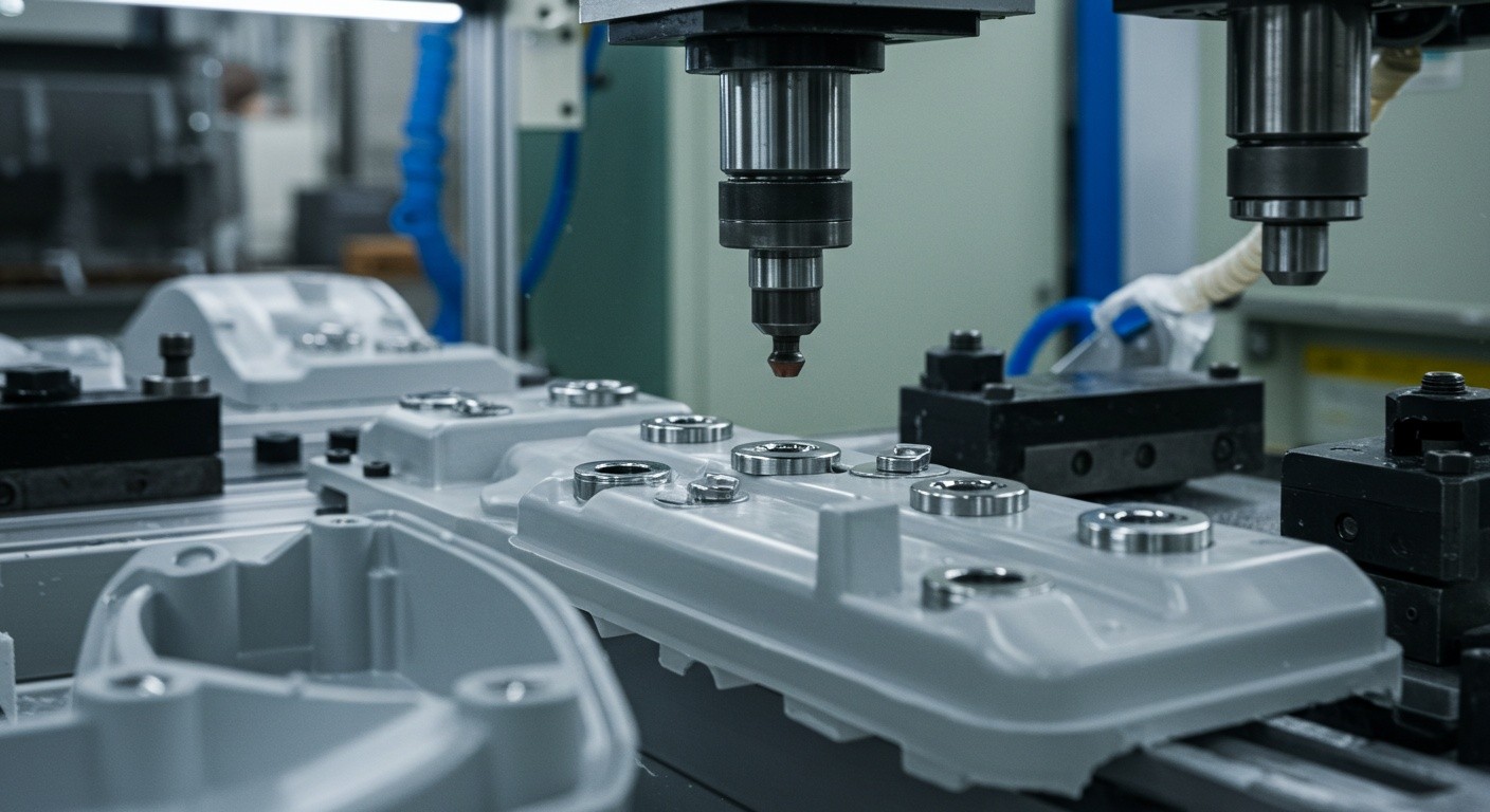Современное оборудование позволяет автоматизировать процесс, минимизируя вероятность дефектов и повышая скорость производства. Использование роботизированных манипуляторов гарантирует точное размещение металлических вставок и равномерное заполнение формы пластиком, что особенно важно при массовом производстве изделий с высокой сложностью конструкции.