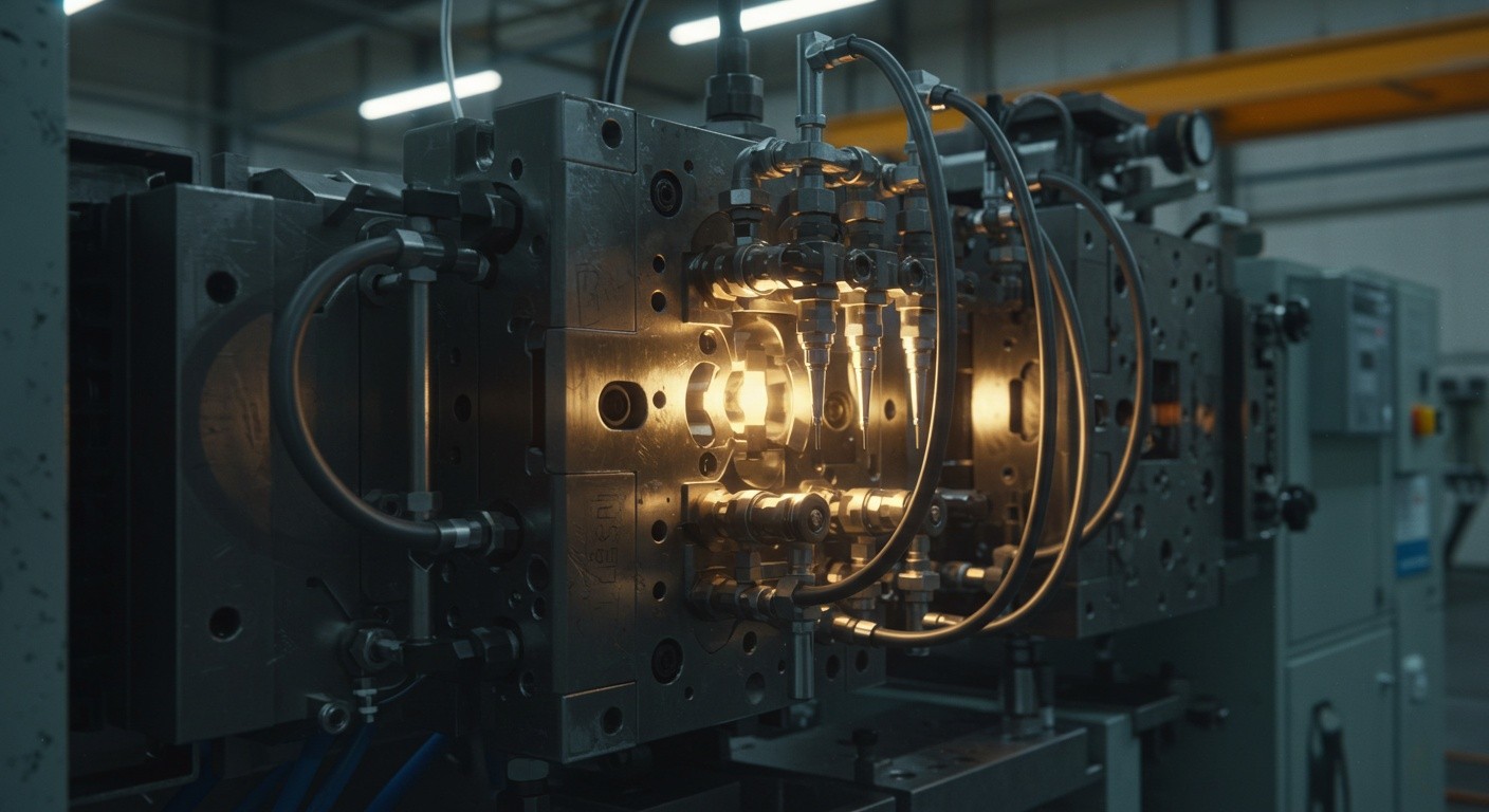 На фото: современная система охлаждения пресс-форм с интегрированными каналами и датчиками температуры.