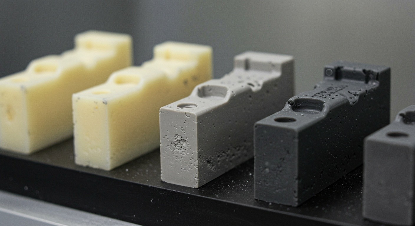 - Конфигурация пресс-формы — сложные геометрические элементы и тонкие стенки требуют точной регулировки давления для предотвращения дефектов.